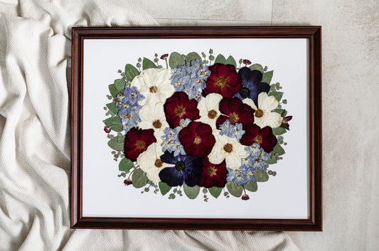 At Everbloom Floral Studio, we're experts in preserving your wedding bouquet using traditional pressing methods. We skip the chemicals, allowing natural colour and shape changes to add to their unique beauty. During pressing, flowers, especially white ones undergo gentle transformations and changes, with colours softening or intensifying, and shapes becoming more interesting.